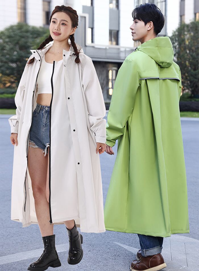 【ロング レインコート】自転車、リュックに対応可能な男女兼用のレインコート。膝下までカバーするロング丈、体がしっかり覆われ、レインブーツを履けば足元まで濡れない、全身を雨から守ることができます。伝統的なレインコートと違い、これはただのレインコートだけでなく、オシャレなデザインで旅行の時はコートとしても使えます。