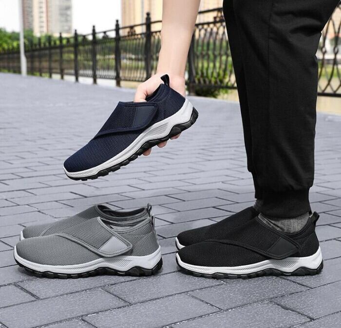 【介護シューズ 幅広】介護靴 メンズ リハビリシューズ 男性用 高齢者 マジックテープ スニーカー 大人 上履き 入院 紳士 軽量 滑り止め 通気性 室外 室内履き 黒靴 介護シューズ 入院シューズ 高齢者シューズ メンズ 介護靴 便利グッズ スリッポンメッシュ通気性柔軟性 | OnionStyle
