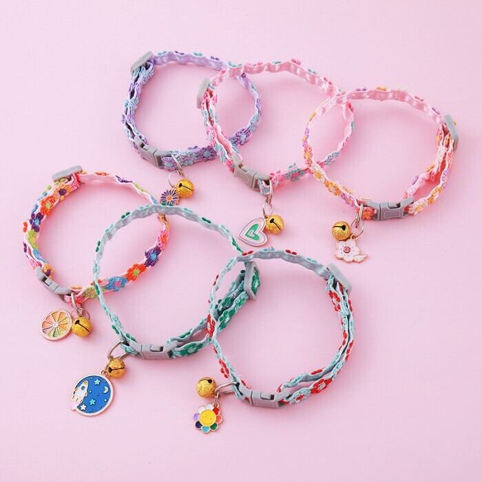 ネコ 首輪 鈴付き ハート型/デージーの花柄/オレンジ形 可愛い首飾り 猫の首輪 猫くびわ セーフティバックル付 サイズ調節可 超軽量 柔らかい ペット首輪 ニット編み 小型犬 猫 兎など兼用 首飾り キュート首輪 猫首輪 鈴付き首輪 カラフル 長さ調整可能 20-30cm | OnionStyle