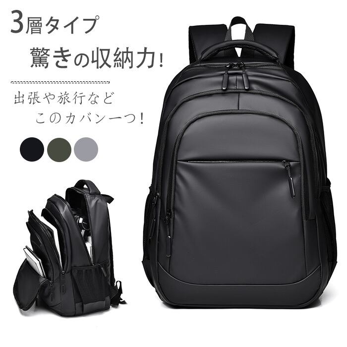 15.6インチ PC リュックサック 防水 耐衝撃 防汚性 通気性 ビジネスリュック カジュアル リュック メンズ 通勤 通学 旅行 出張 機内に持ち込める 男女兼用 バックパック リュック 人気バック レディース メンズリュック グレ 黒 撥水 3層タイプ多機能 | OnionStyle