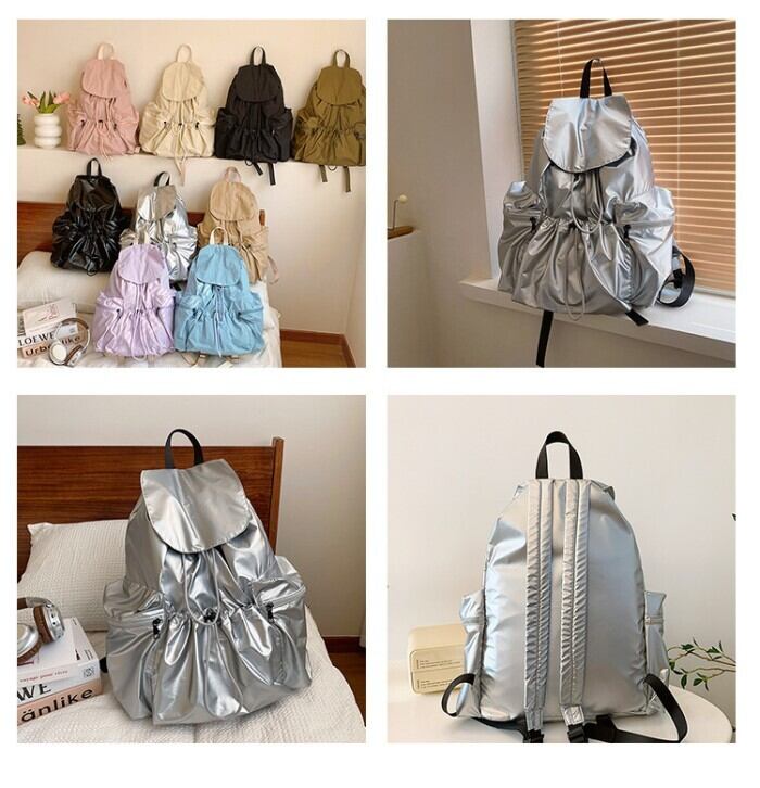 ユニークな折り畳まれた巾着デザイン 折り畳まれた巾着デザインは、この女性用バックパックにファッショナブルさを加え、個性を示します。