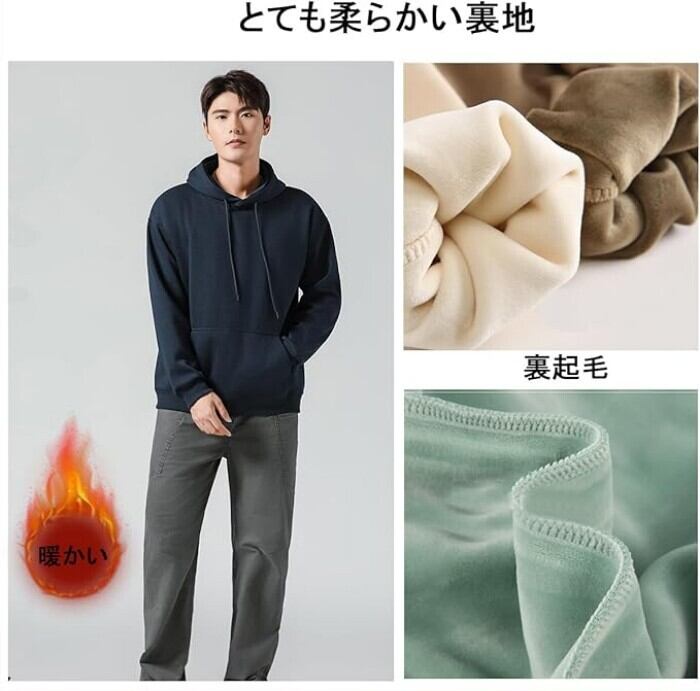 【快適で暖かい】柔らかく暖かっ肌触りの良い裏起毛素材を使用し、非常に柔らかく、変形しにくく、保温性が高く、保温性と耐久性が良く、さらにフードに調節できるドローコードも付いていて、秋から春までに保温効果抜群のフード付きメンズパーカーです。カジュアル感がある定番な大きいサイズカンガルーポケットが設置されていて、手を温めたり、小物を入れたりすることもできます。リブ袖は伸縮性があり、手首に優しくフィットし、冷たいすきま風を防止。