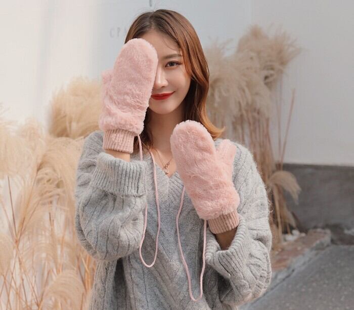 防寒手袋 レディース 【2WAY仕様・二重極暖起毛・厚手で上質な肌触り】指なし フード付き ミトン手袋 柔らかい もこもこ可愛い 伸縮性 通勤 通学 自転車 プレゼント てぶくろレディース ふわふわ柔い 保温効果 スマホ タッチパネル対応 ファション手袋グレーピンク | OnionStyle