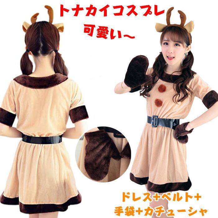 トナカイ コスプレ クリスマス コスチューム ハッピートナカイパーティー イベント クリスマス 衣装 セクシー クリスマス 仮装サンタ レディースファション 女性パーティー イベントサンタクロース コスチューム トナカイ お歳暮ギフト スカート手袋 サンタガール | OnionStyle