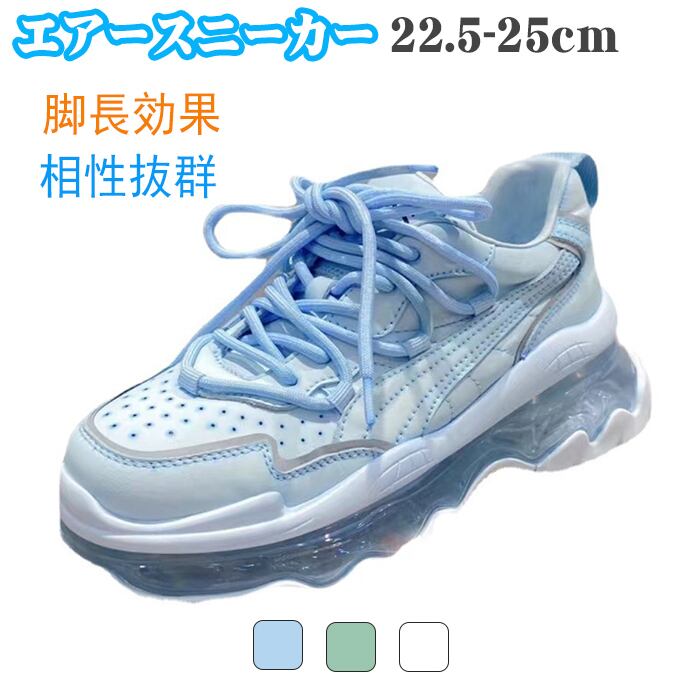 厚底スニーカー 運動靴 クリアソール レディース ボリュームソール スニーカー エアーシューズ 通気性足首ほっそり レースアップ ローカット 脚長アップ 美脚効果 歩きやすい 滑らない 学生 シンプル カジュアル スニーカーファション 人気 運動靴 運動 通勤 通学