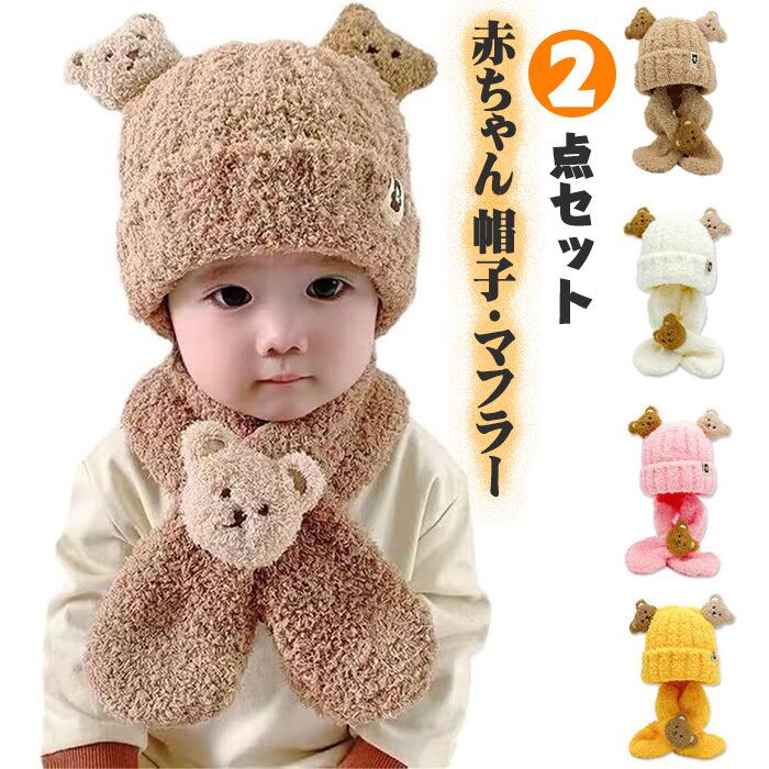 赤ちゃん 帽子 冬 ニット帽 赤ちゃん 帽子・マフラー 2点セット ベビー 帽子マフラー くま耳 子供 帽子 もこもこ 可愛い 暖かい 防寒暖かい 伸縮性 柔らかい 肌に優しい 防寒防風可愛いデザイン 女の子 男の子 子供用品 帽子マフラー クリスマス 出産祝い誕生日プレゼント | OnionStyle