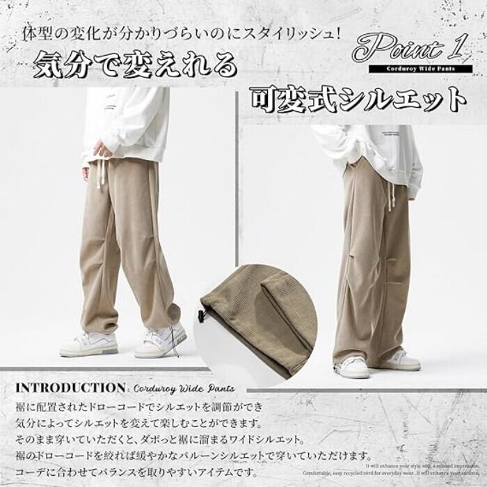 ワイドパンツ メンズ コーデュロイ ズボン 大きいサイズ カーゴパンツ 秋服メンズ男ボトムス おしゃれ 人気 配色ウエストイージーぱんつ 無地 かっこいい ロング丈 ウェストゴム 裾調節可能ずぼん 履き心地 ゆったり 暖かい 厚手 調整紐カジュアル スラックス 春秋冬対応 | OnionStyle
