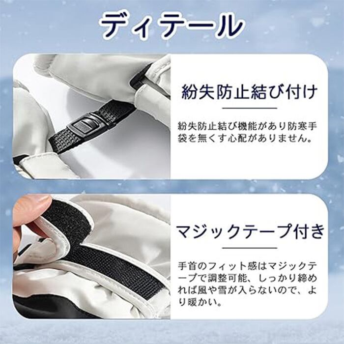 【高機能防風防寒素材】防寒性や表面撥水と防風性ができる材質を採用して、冬の季節は屋外で雪天気の時に使用できます。裏地にはフリース素材で暖かく速乾性を持っております。冬の季節は屋外で雪かき時に使用でき、効果的に防水機能を発揮し、水の侵入を防ぎ手袋内部を暖かく確保します。防寒性・防水性・防風性に優れ、雪や水に濡れても中まで浸透しにくい防寒手袋。バイクやサイクリングのグローブとしても最適で。ご注意:小雨程度で使用可能ですが、大雨ではご使用の場合は、濡れてしまう恐れがありますので。