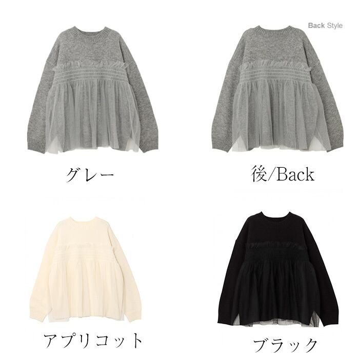チュール ドッキング ビスチェ風 レディースニットセーター 女性 秋冬服 トップス 着痩せ効果 細見えるニットトップス セーター プルオーバー 長袖オーバーサイズ 体型カバー チュニック 着映え トレンド カジュアル ファション 上品 防寒 暖かい 春秋冬向け | OnionStyle