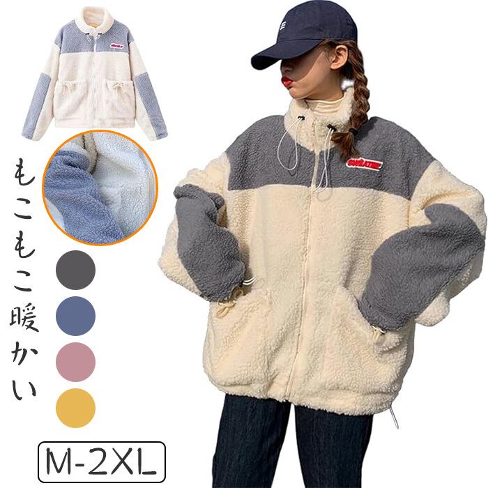 ボアブルゾン ボアコート レディース リバーシブル ボアジャケット ボアコート ボア ブルゾン厚手 ジャケット ゆったりコート アウター マウンテンパーカー フリースジャケット スタンドブルゾン もこもこ暖かい防寒 柔らかいおしゃれ | OnionStyle