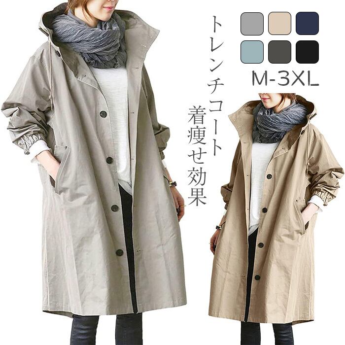 トレンチコート アウター レディース コート スプリングコート カジュアル 通勤 春 秋 ゆったり ロング丈 フード付き 春夏秋冬 春服 カジュアル 通勤 ゆったり ロング丈 フード付き 50代40代30代20代 無地 普段着 ファション 着心地 大きいサイズ 体型カバー 通勤 通学 | OnionStyle