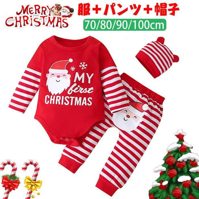 クリスマス衣装 コスプレ サンタクロース 長袖ボディスーツパンツ帽子セット サンタ 子供用 男の子 女の子 赤ちゃん服 クリスマスコットン赤白のストライプの冬服 肌に優しく 暖かい ベビー幼児用パジャマクリスマス衣装セット 新年会 写真撮影誕生日 パーティープレゼント | OnionStyle