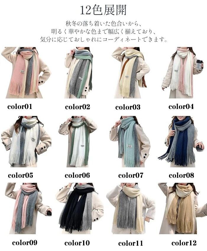 【簡単なお手入れ?心から暖める贈り物】?? 30℃以下の洗濯機で洗えるので、お手入れが簡単なストール 大判です。脱水は短時間で済み、アイロンがけも低温でOK。忙しい日常でも手軽にケアでき、長く美しい状態を保てストール 大判。首に巻くだけでなく、肩にかけたり、膝掛けやブランケットとしても使用できます。さらに、リラックスしたい時には毛布としても使えるので、多用途に活躍します。寒い秋と冬の季節で、誕生日、結婚式、クリスマス、感謝祭の時贈り物として受け取った方のライフスタイルに自然に溶け込みます。 ストール 大判は12色展開で、多彩なカラーバリエーションが揃っています。秋冬の落ち着いた色合いから、明るく華やかな色まで幅広く揃えており、気分に応じておしゃれにコーディネートできます。カラー違い持ちやギフトとしても喜ばれる最適のアイテム。