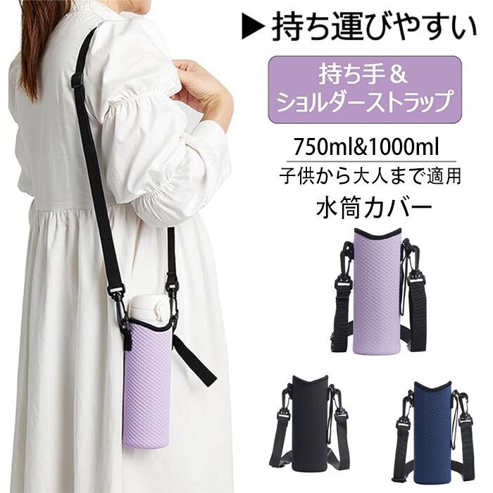 水筒カバー ショルダー 750ml 1000ml 大容量対応 保冷保温 マイボトル 肩掛け 手提げ 斜めかけ 滑り止め加工 丈夫厚手で柔らかいショルダーストラップ付き水筒ポーチ 学校通学/通勤/旅行/サイクリング 持ち運び便利 手持ち 斜めがけタイプ ベルト調節できパープル ブラック | OnionStyle
