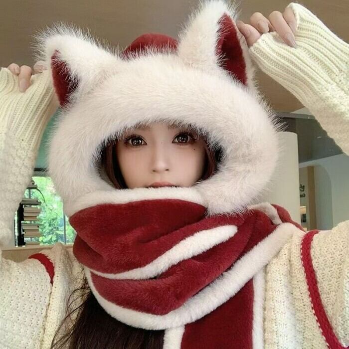 キツネ 柄 ファー帽子マフラー 手袋 一体型レディース 帽子マフラーフード付き キツネ耳 ふわふわ ファー キツネ 学生 女性 ぬいぐるみ帽子冬自転車 防寒対策ファー帽子マフラーお出かけ もこもこ暖かい 可愛い柔らかい防寒&小顔効果 防寒保温秋冬ファションかわいいキツネ | OnionStyle
