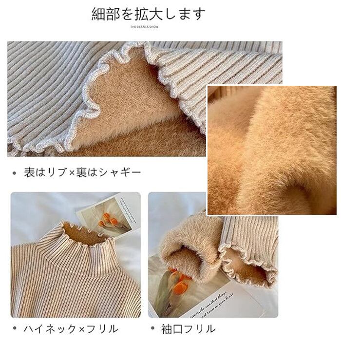 ニットセーター トップス レディース 裏起毛 セーター ハイネック リブニット フリルネック 裏ボア 防寒インナー 秋冬 長袖 ストレッチ 暖か 防寒 上品 大人 レイヤード シャギー オフィス カジュアル きれいめ 着痩せ効果 レディース女性 セーター 柔らかい | OnionStyle