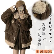 トグルボタンのデザインがレトロで可愛らしい雰囲気を演出します。裏地は起毛素材で保温性に優れ、寒い季節に最適なアウターです。