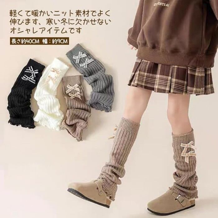 ダブルリボンが可愛い!使い勝手の良い色合いのレッグウォーマーです、