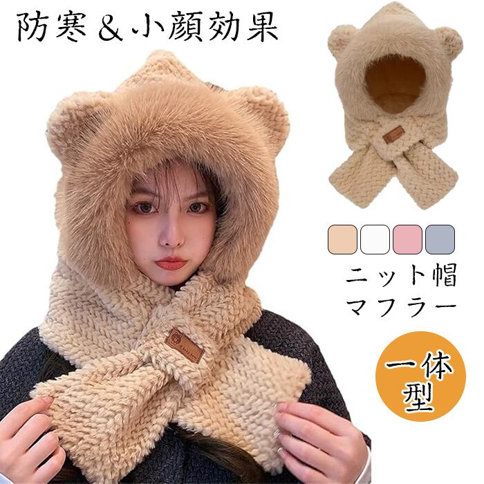 ニット帽 マフラー 付き レディース 帽子 マフラー 一体型 裹起毛 マフラー フード付き ふわふわ 耳付き 裏ボア 冬 ニット 帽子 自転車 防寒対策 アウトドア お出かけ もこもこ暖かい 可愛い柔らかい肌に優しい 防寒&小顔効果 もこもこ柔らかい 防寒保温秋冬 ファション | OnionStyle