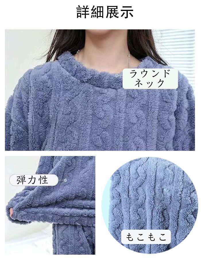 【まるで毛布に包まれているような着心地】ふわふわもこもこの優しい肌触り。上下セットだから全身をふんわり包みます。