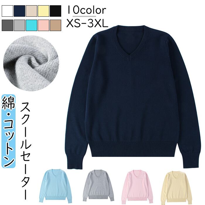 スクールセーター レディース 女子学生 【寒い日でもほっこり暖かさ?肌になじむ綿?1枚でこなれ感アップ】 防寒 保温 セーター 長袖 Vネック 制服セーター コットン やわらかい 無地 シンプル 高校生 中学生 ニットカーディガン毛玉になりにくい あったか 防寒 | OnionStyle